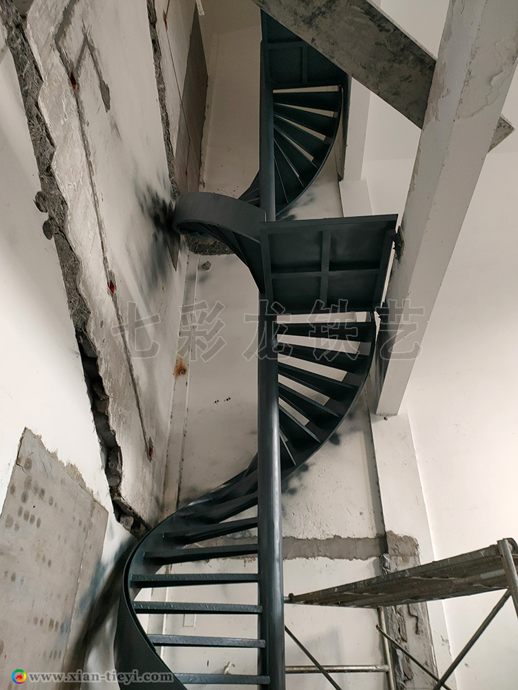 • 韩城市碧桂园韩城首府中柱旋转楼梯,位于陕西省渭南市韩城市沿黄观光路。该小区是别墅区,原来安装的是直梯,业主将原来的直梯拆除了,占用原有洞口,安装了一部电梯和旋转楼梯。楼梯中柱用直径165MM*2.5厚镀锌圆管;踏步板用4#花纹钢板;外侧梯梁用8+6MM厚的钢板,中间留25MM的空隙,用以后期安装玻璃。钢结构中柱旋转楼梯定制请致电:13909268599